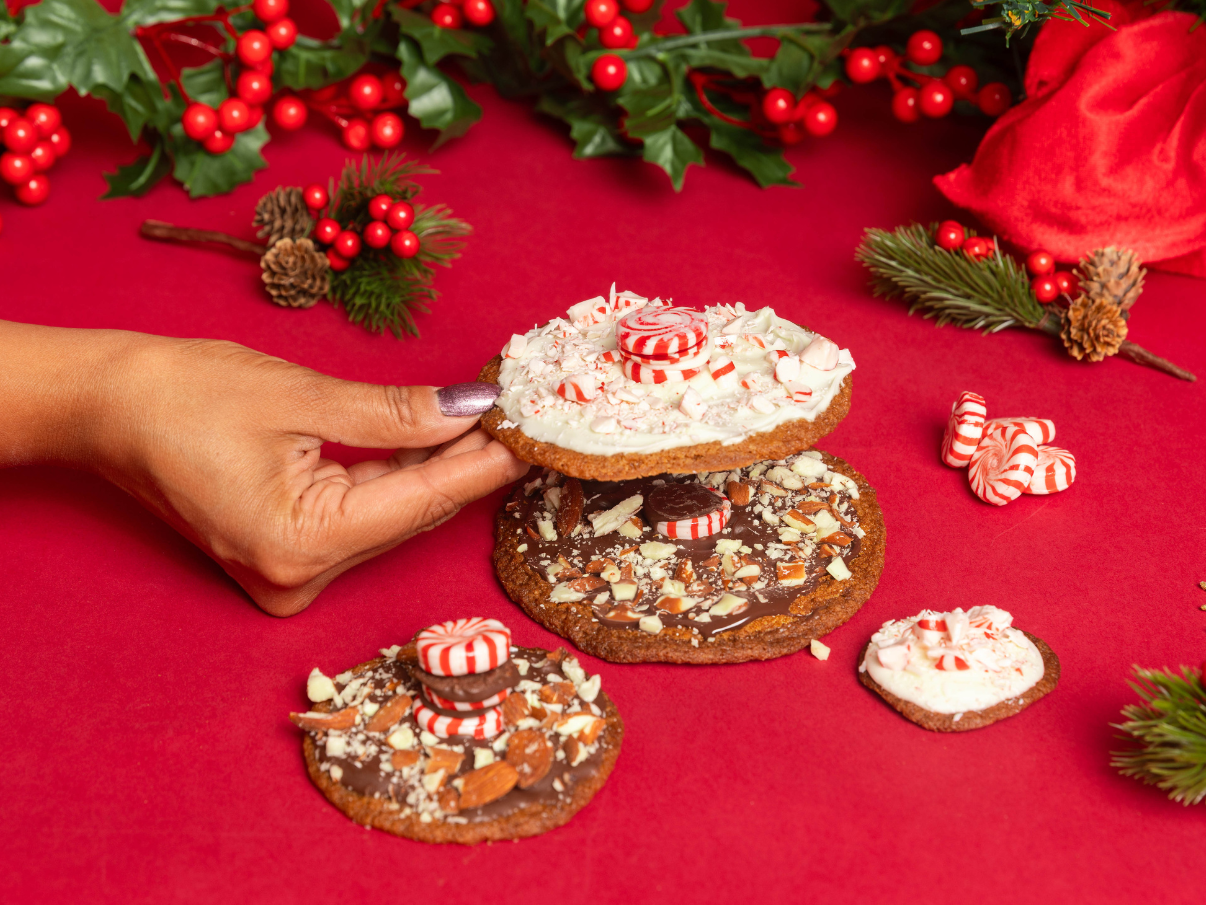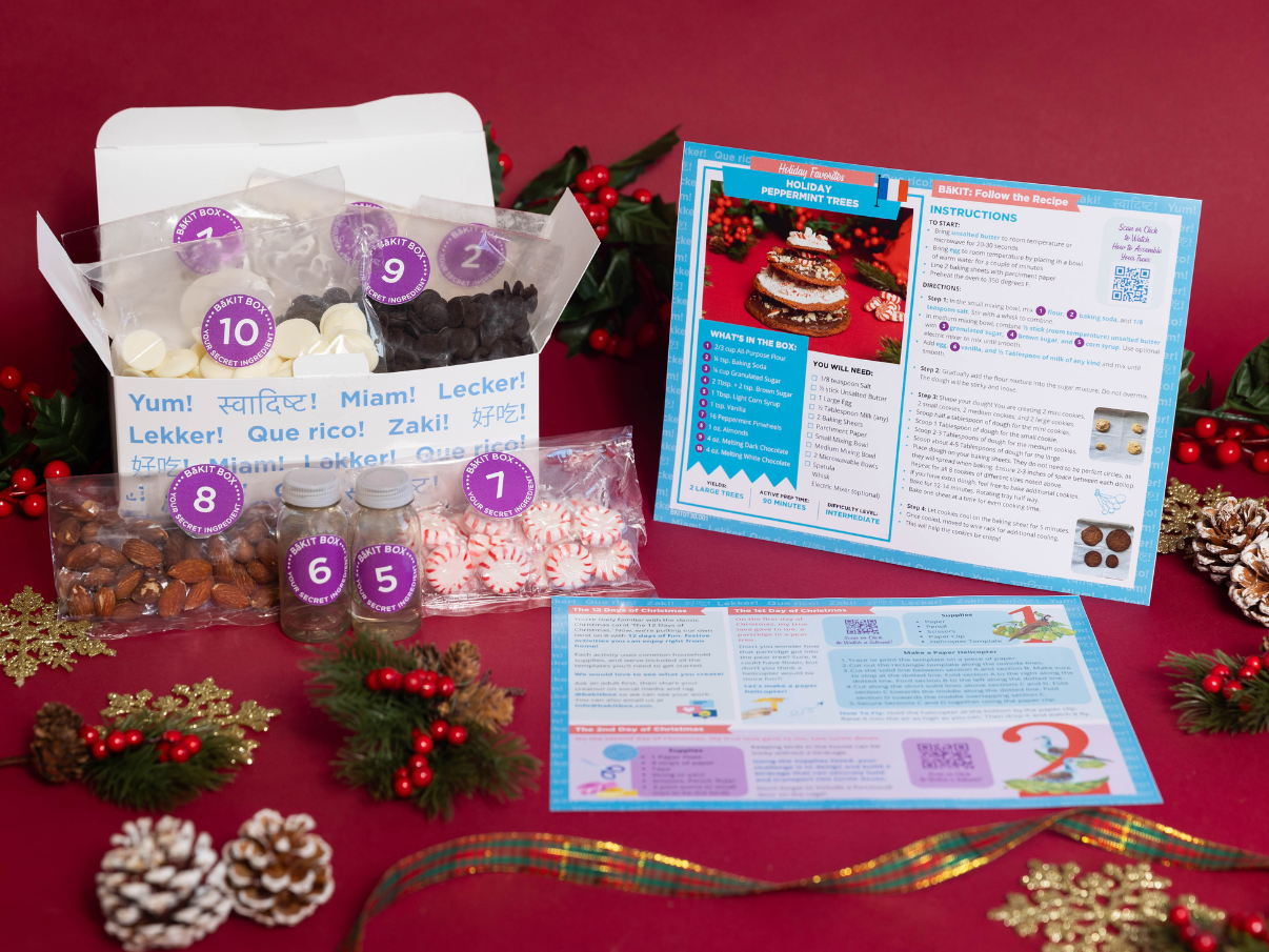We currently offer four single kits for corporate gifting: Holiday Peppermint Trees, Mexican Churros, Hexagon Honeycomb Cookies, and Linzer Heart Cookies.