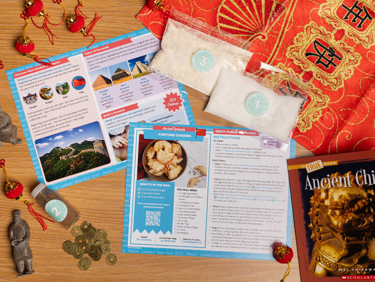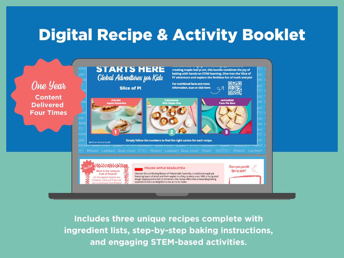 Explore Global Flavors with a STEM Twist: Each quarter, dive into three unique baking activity kits that not only introduce international cuisines but also incorporate STEM principles, allowing your family to taste and learn about the science behind global flavors.